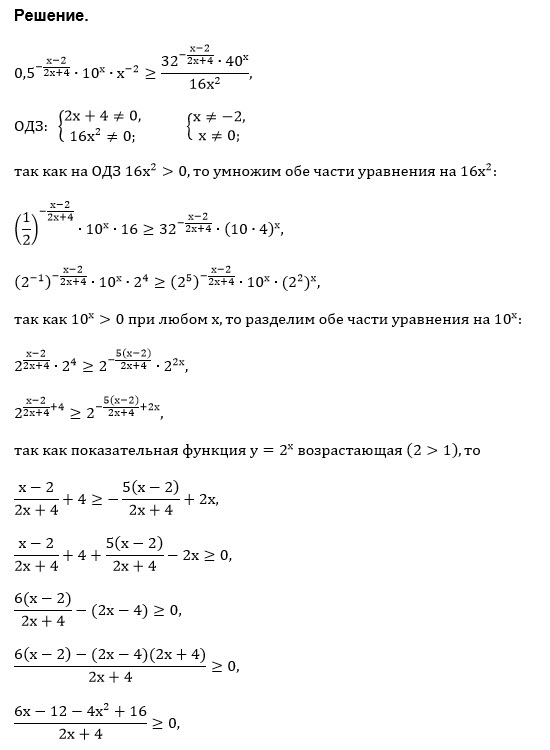 2^((x-2)/(2x+4)) * 10^(x)/x^2 ≥ 2^(–5(x-2)/(2x+4)) *2^(2x)*10^(x)*2^(-4)/x^2
