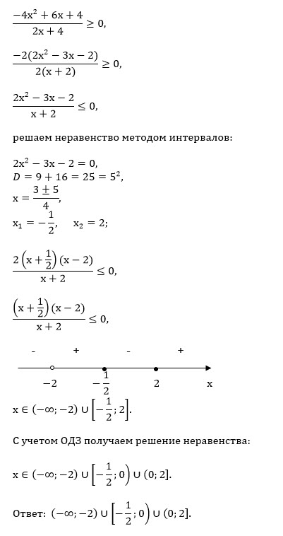 (х–2)/(2x+4) ≥ -5(x-2)/(2x+4) + 2x - 4;