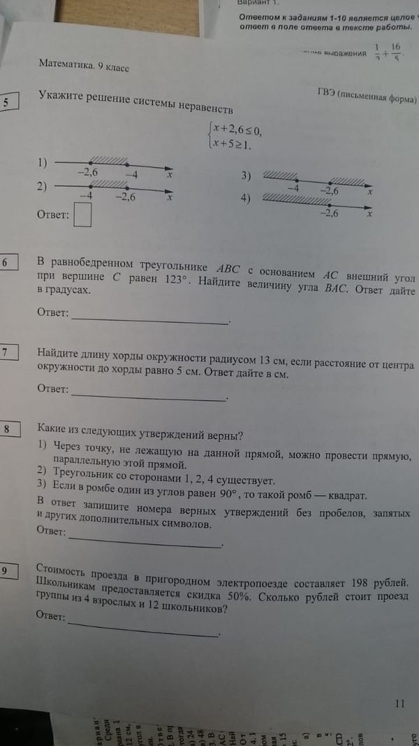 7 | Найдите длину хорды окружности радиусом 13 см. если расстояние от центра окружности до хорды равно 5 см. Ответ дайте в см.