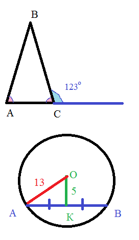∠ BCA и смежный с ним внешний угол, величина которого 123°