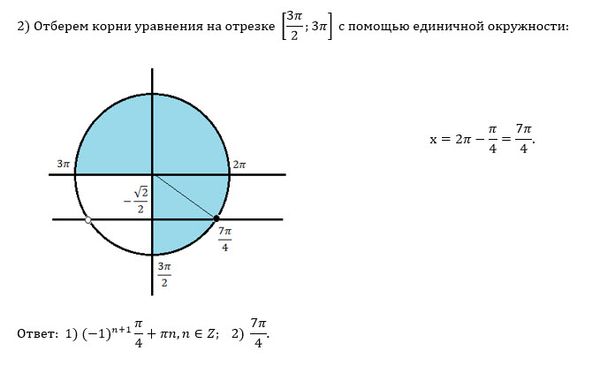 б) При отборе корней удобно записать ответ в виде серии двух ответов