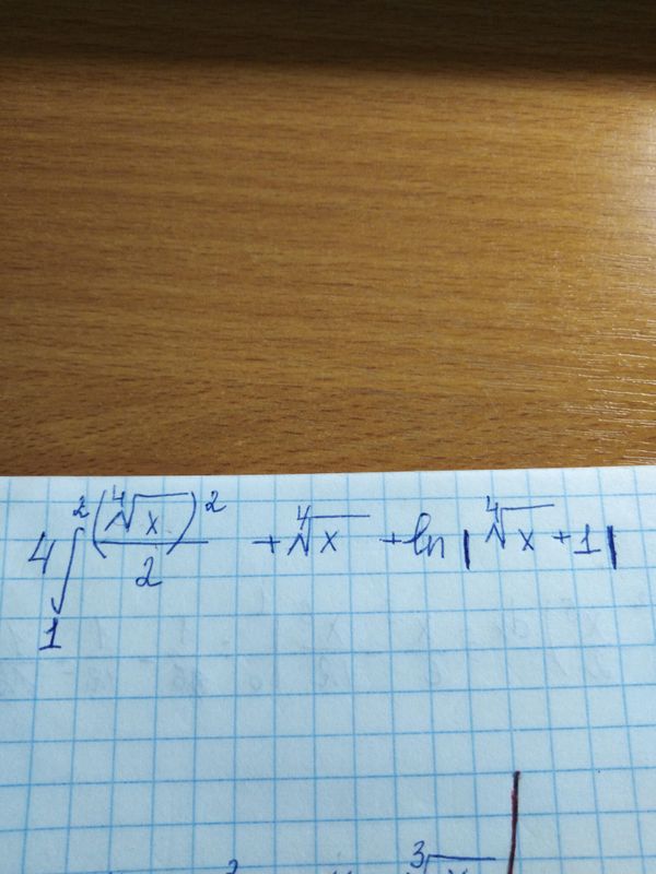 =4* ∫ ^(2)_(1)sqrt(x)dx/2 + 4 * ∫ ^(2)_(1)x^(1/4)dx + 4 * ∫ ^(2)_(1) ln (x^(1/4)+1)dx=