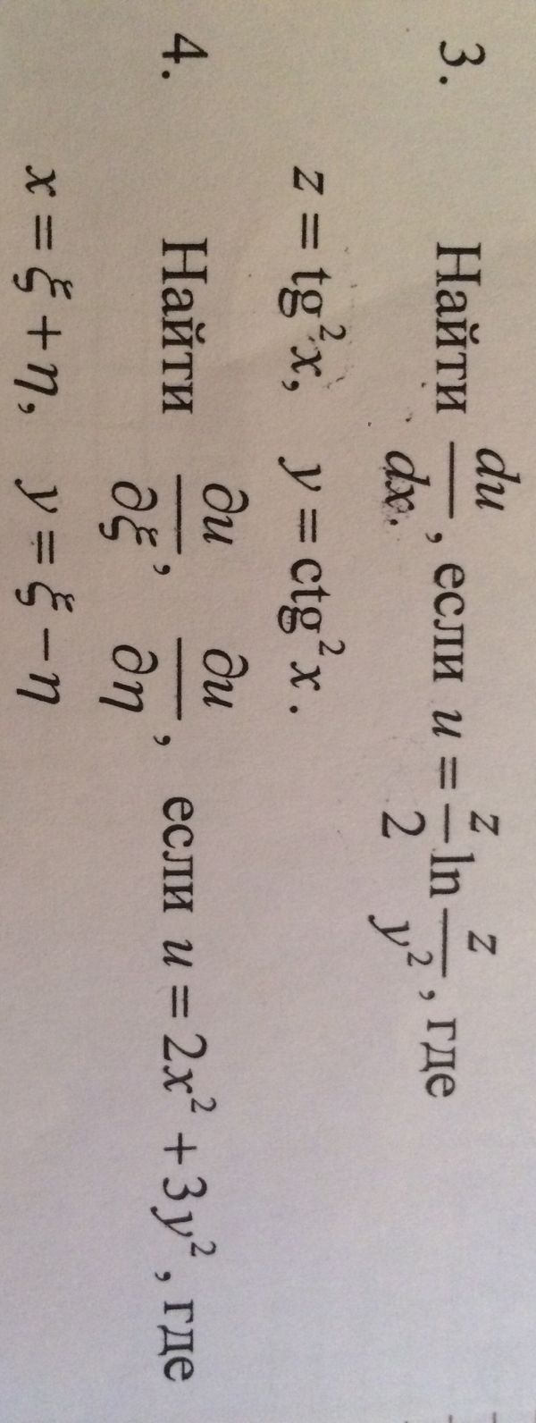 du/dx=(ln(z/y)+1)*(tgx)/(y*cos^2x)+(2ctgx)/(y*sin^2x)