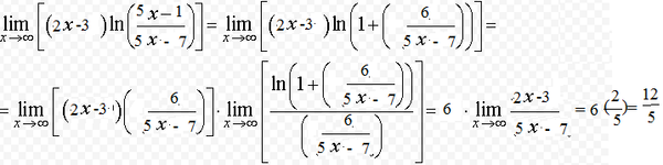 а) lim (1 - x)tg × π/2 × x б) lim (2x - 3)(ln (5x - 1) - ln (5x - 7)) .