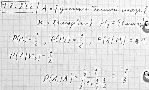 В урне лежит шар неизвестного цвета — с равной вероятностью белый или черный. В урну опускается один белый шар и после тщательного перемешивания наудачу извлекается один шар. Он оказался белым. Какова вероятность того, что в урне остался белый шар?