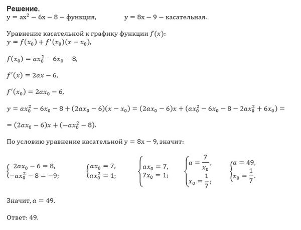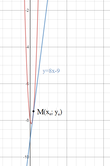 прямая y=8x-9 является касательной к графику функций ax^2-6x-8