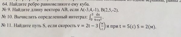 11) Найдите путь S, если v=2t-3(м/c) и при t=5, S=2