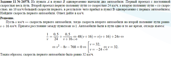 Первый доехал с постоянной скоростью весь путь .второй проехал первую половину пути со скоростью 50км/ч ,а вторую половину со скоростью на 15 км/ч большей скорости первого в результате чего прибыл в В одновременно с первым автомобилем .найдите скорость первого автомобиля