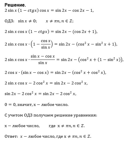 2sinx(1-ctgx)cosx=sin2x-cos2x-1...