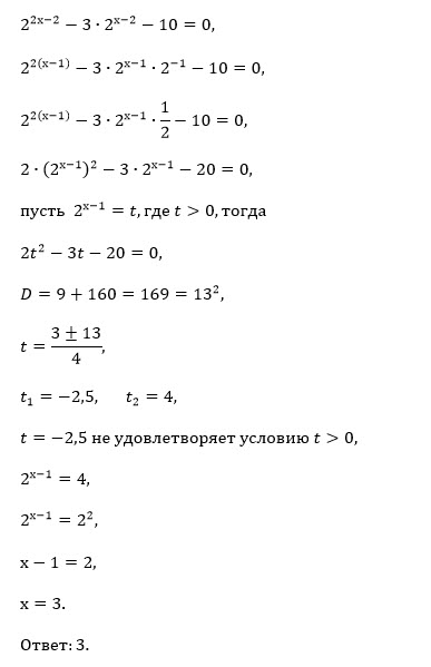 2^(2x-2) - 3 * 2^(x-2) -10 = 0