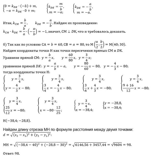 б) Найдите длину отрезка [m]MN[/m], если известно, что катеты треугольника [m]ABC[/m] равны [m]60[/m] и [m]80[/m].