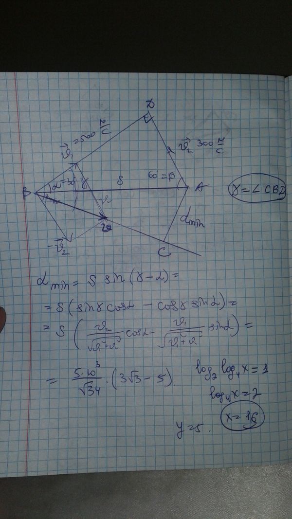 две пушки стреляют одновременно навстречу друг другу снарядами, первая под углом альфа=30 градусов к горизонту с начальной скоростью 500м/с, а вторая под углом бета=60 градусов с начальной скоростью 300 м/с. Пушки находятся друг от друга на расстоянии = 10 км. Каким будет минимальное расстояние между снарядами в процессе полета?