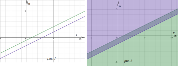 На пл. хОа cтроим графики a=(x-3)/2 и a=(x-1)/2
