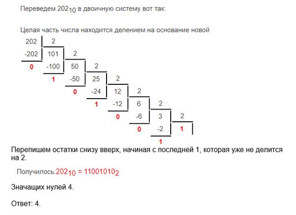 Сколько значаших нулей в двоичной записи десятичного числа 202