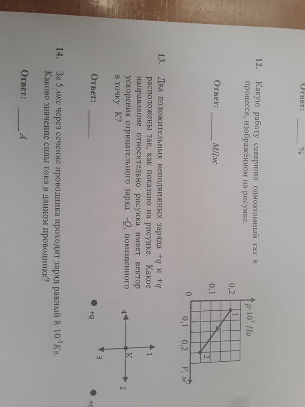 13. Два положительных неподвижных заряда +q и +q расположены так, как показано на рисунке. Какое направление относительно рисунка имеет вектор ускорения отрицательного заряда -Q, помещённого в точку K?