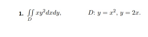 1. Вычислите двойной интеграл по области D, ограниченной указанными линиями. 2.Найдите работу силы F~ при перемещении точки вдоль линии (MN) от точки M к точке N.