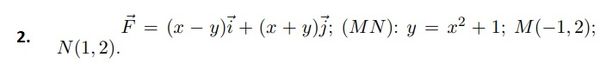 2) А= ∫(F*dr)= ∫Fx*dx+Fy*dy= ∫(x-x^2-1)dx+(x+x^2+1)dy dy=2xdx A=∫(x-x^2-1)dx+(x+x^2+1)2xdx интеграл от -1 до 1 A=∫(x-x^2-1+2x^2+2x^3+2x)dx A=∫(-1+x^2+2x^3+3x)dx