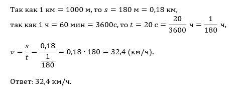 Бегун пробежал 180 метров за 20 секунд. Найдите среднюю скорость Бегуна. Ответ дайте в километрах в час.