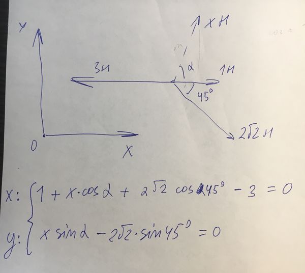 Не буду доводить решение до конца, но полагаю следующее вот я построил систему уравнений по рисунка. Надо найти 2 неизвестных x и α . Это не должно быть сложно. Справитесь?