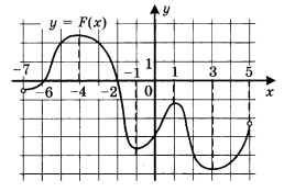 Нам нужно определить сколько имеется точек на данном графике, в которых F′(x) = 0. Мы знаем, что производная равна нулю в тех точках, где касательная к графику функции параллельна оси ох, таких точек на данном интервал [-5;2] 3, это -4, -1, 1