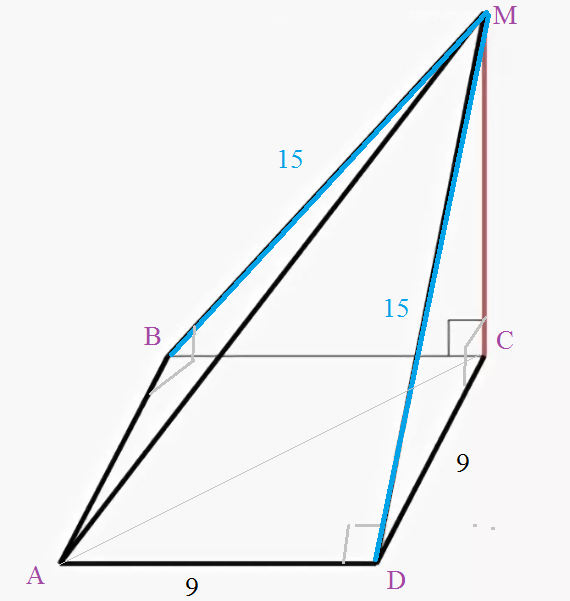 MC^2=MD^2-CD^2=15^2-9^2=225-81=144