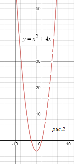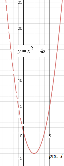 y=x^2-4x - парабола ветви вверх, пересекает ось Ох в точках 0 и 4, вершина в точке