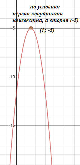 Квадратичная функция y=-3x^2+9x+c, график которой парабола, ветви вниз, принимает наибольшее значение в вершине х_(o)=-b/2a=-9/2*(-3)=9/6=3/2=[b]1,5[/b] y(1,5)=-3*(1,5)^2+9*1,5+c По условию y(1,5)=-5 -3*(1,5)^2+9*1,5+c=-5 [b]с= - 11,75[/b]