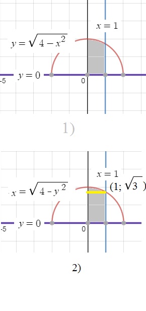 sqrt(3) ≤ y ≤ 2; 0 ≤ x ≤ sqrt(4-y^2)