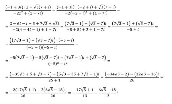 (-1+3i)*z+sqrt(3)(7+i)/-2z^(2)+(1-7i), где z= -2+i