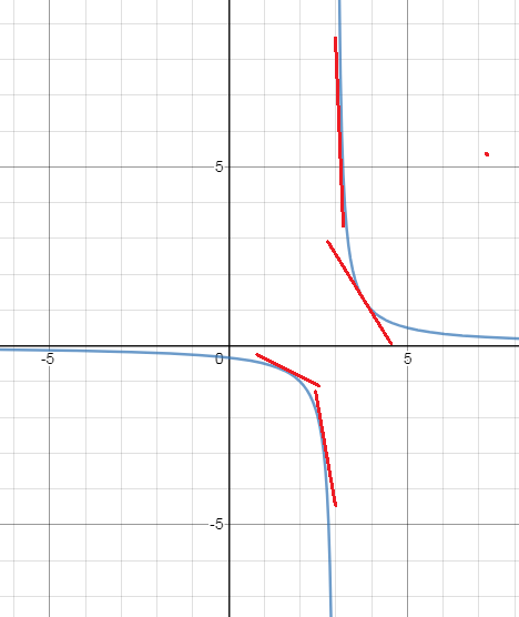 Эта функция не определена в точке x=3, производная в точке x=3 не существует. В каких точках эта функция дифференцируема? Во всех, кроме х=3 В любой точке кроме x=3 можно провести касательную.