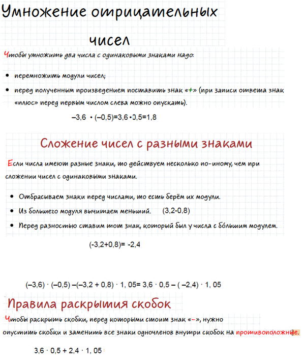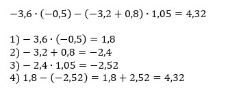 (-3,6) * (-0,5) -(-3,2 + 0,8) * 1, 05= 3,6 * 0,5 - ( -2,4) * 1, 05 =