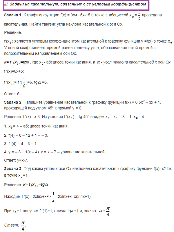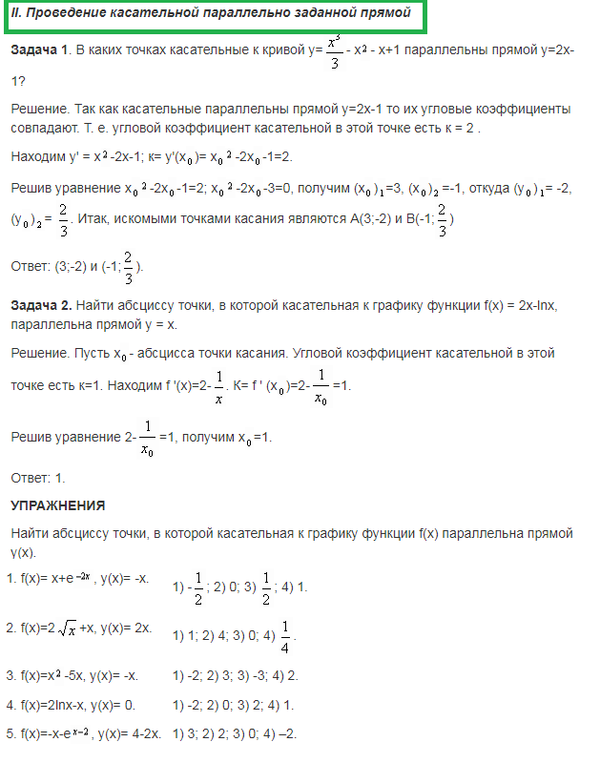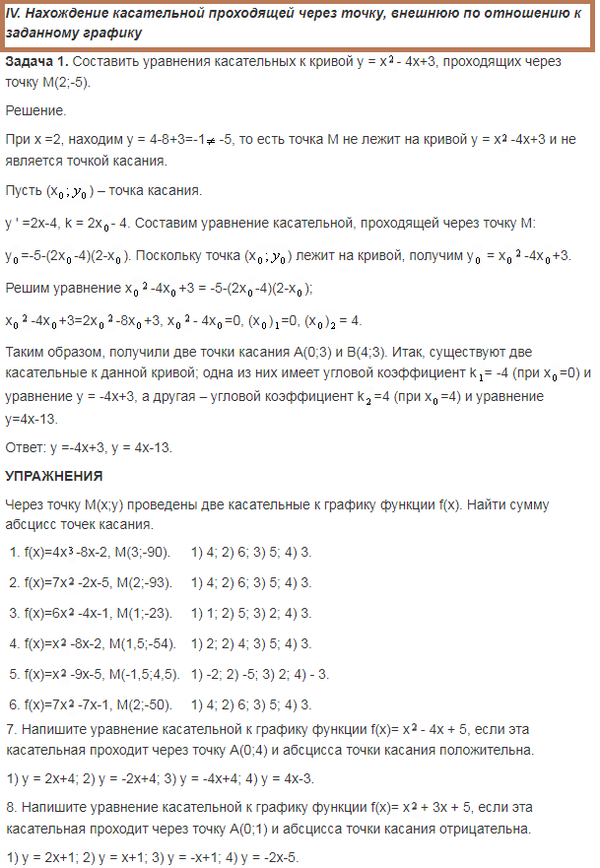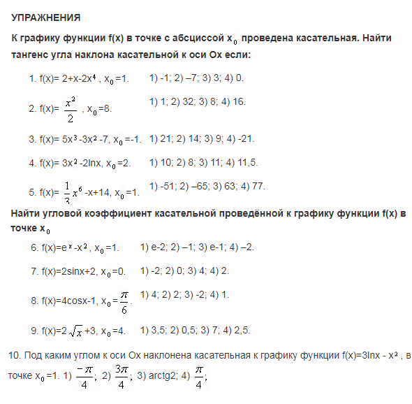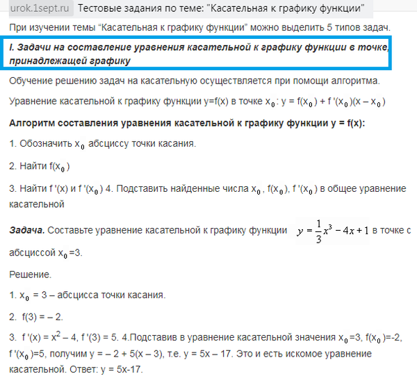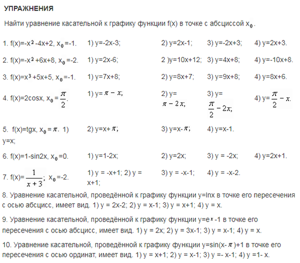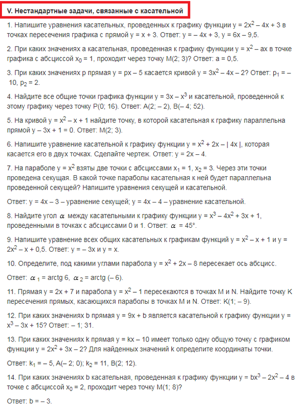 8. Проанализируйте систему упражнений по теме в разных учебниках алгебры и начал анализа и выделите основные типы и виды задач. Приведите по одному примеру каждого типа с решением. (Тема лабораторной «Методика изучения функциональной линии. Касательная к графику функции»)