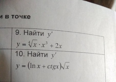 9. (13/4)x^(9/4)+2 10. (1/x-1/sin^2x)sqrt(x)+(lnx+ctgx)/2sqrt(x)