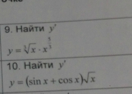 [m]y`=(sinx+cosx)`\cdot\sqrt{x}+(sinx+cosx)\cdot (\sqrt{x})`=[/m]