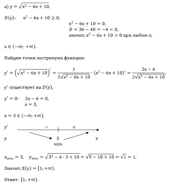 Тогда y=sqrt(3^2-6*3+10)=sqrt(1)=1 - наименьшее значение данной функции.