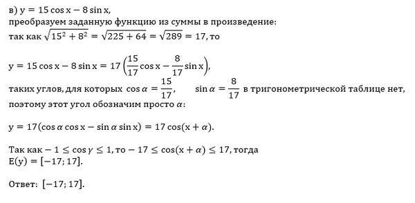 в) y = 15cosx - 8sinx