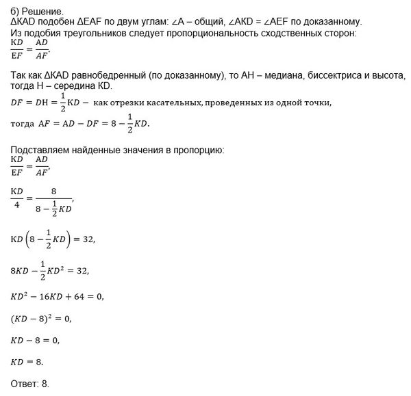 б) Найдите KD, если AD = 8 и EF = 4.