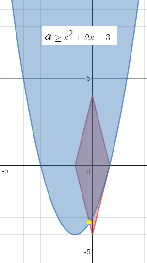 Этому множеству, удовлетворяют точки на плоскости, расположенные внутри параболы ( окрашено синим цветом)