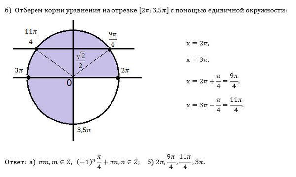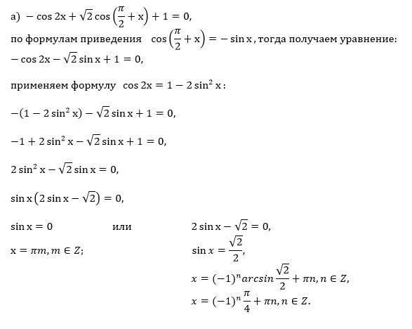 a) Решите уравнение -cos2x+sqrt(2)cos(Pi/2+x)+1 = 0 б) Отберите корни из данного отрезка [2Pi; 3,5Pi]