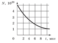 На рисунке приведён график зависимости числа нераспавшихся ядер полония [m]_{84}^{213}Po[/m] o от времени. Определите период полураспада этого изотопа. [i]Ответ в мкс.[/i]