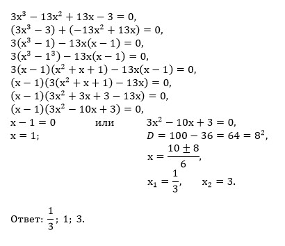 Решить уравнение: 3x^3-13x^2+13x-3 = 0...