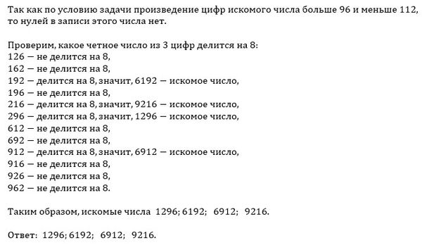 Найдите четырёхзначное число, кратное 24 , произведение цифр которого больше 96 и меньше 112 . В ответе укажите какое-нибудь одно такое число.