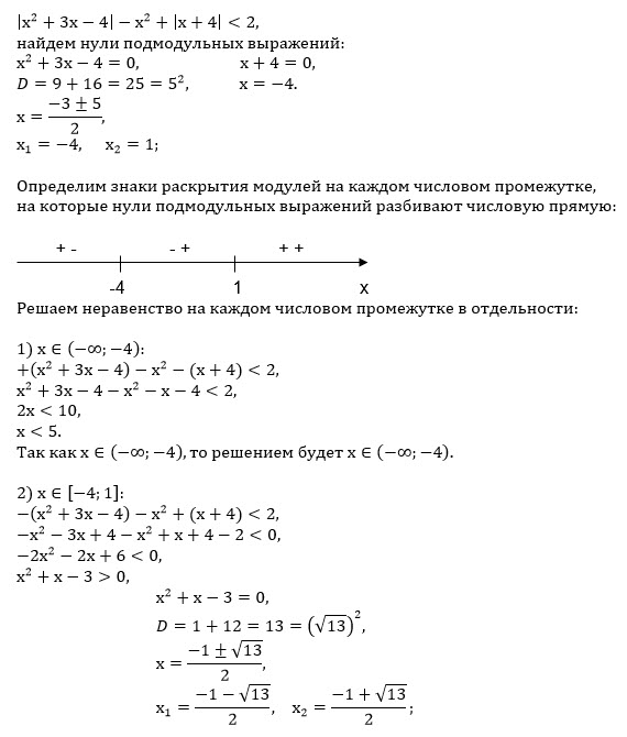 Решите неравенство |x^2+3x-4|-x^2+|x+4| < 2