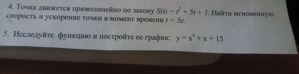 4. V=S'=2t+5 V(5)=15 a=V'=2 посмотрите видео с подобной, но чуть более сложной задачей [youtube=https://youtu.be/h4SblkY9a1Q]