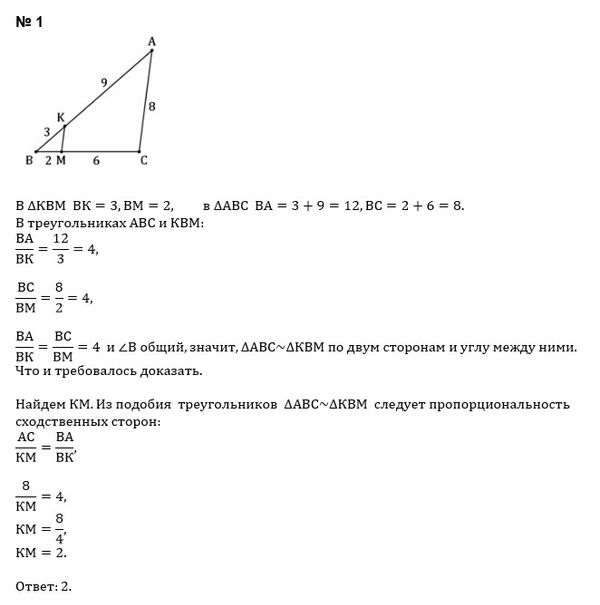 2. Через точку К стороны АВ прямоугольного треугольника проведена