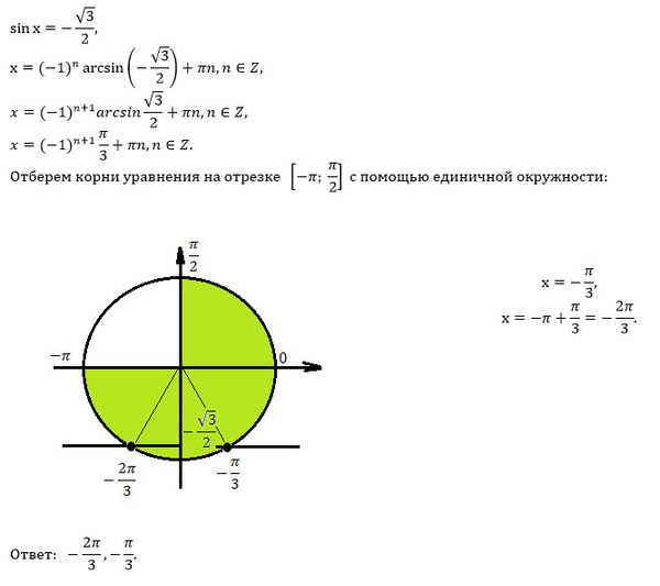 Найдите все числа из отрезка [-п ; п/2] для которых выполняется равенство sinx=-√3/2
