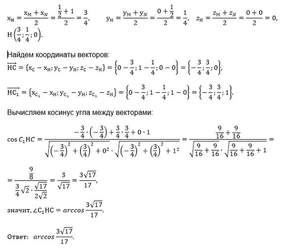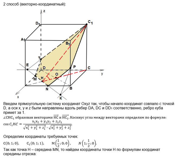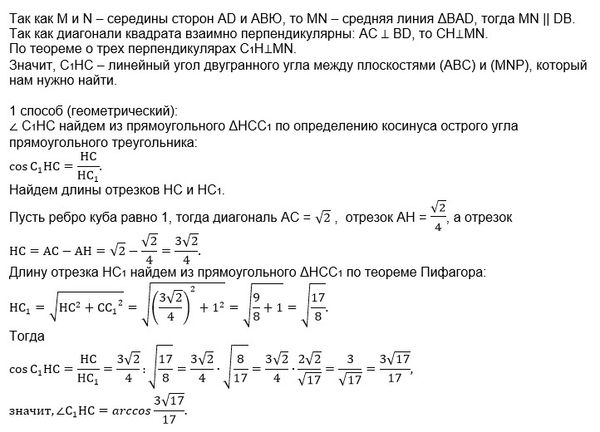 2) В кубе ABCDA1B1C1D1 найдите угол между плоскостью (ABC) и плоскостью, проходящей через вершину C1 и середины рёбер AD и AB.