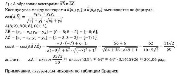 • внутренний угол А в радианах с точностью до 0,01;