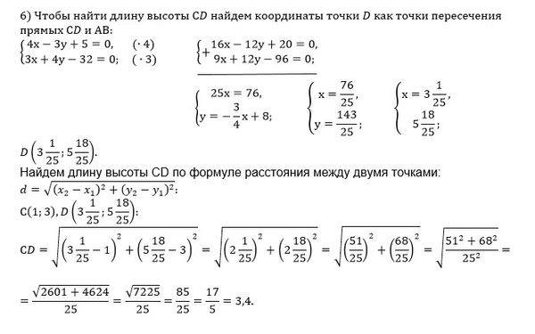 • уравнение высоты, проведенной через вершину С;