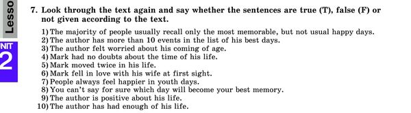 Всего два задания: в первом задании нужно подобрать к выделенным словам из текста синонимы (ex. 6), а во втором задании (ex. 7) опять-таки из текста указать где правдивые высказывания, а где нет (True or False).